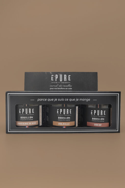 Des concentrés de veau, de volaille et de bœuf en poudre ! Le traditionnel bouillon de volaille se transmet de génération en génération et aujourd’hui, Épure tient vous faire (re)découvrir les saveurs d’origines de ce mythique bouillon sans additif. Et pour davantage de plaisir gustatif, ÉPURE à recréer un bouillon de veau ainsi que le bouillon de bœuf, pas de jaloux !