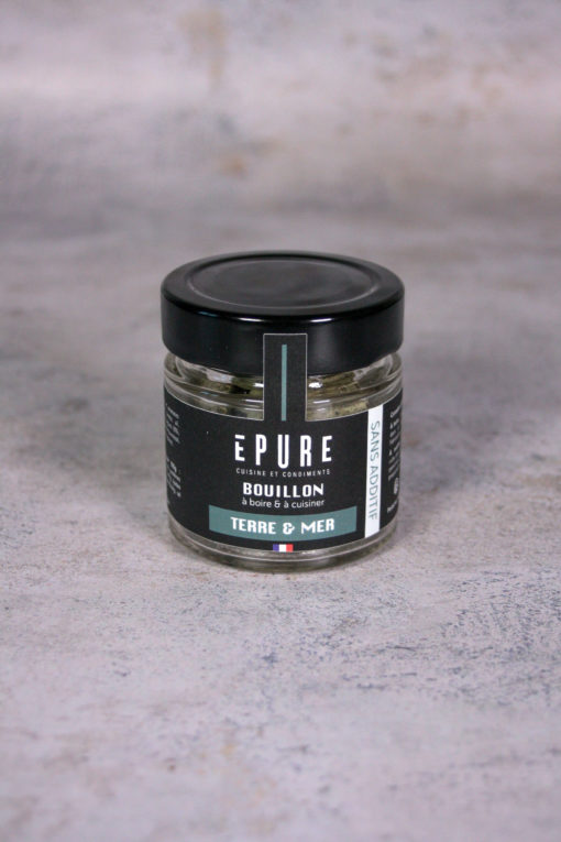 Nos cubes de bouillon TERRE & MER : Entre Terre & Mer: un subtil mariage de racinaires et d’algues: dulse, wakamé, laitue de mer et fucus viennent apporter une touche iodée aux saveurs terriennes de la carotte du poireau, du navet et d’une pointe de céleri. Il accompagne à merveille mollusques et crustacés ou une base originale d’un phô aux crevettes.